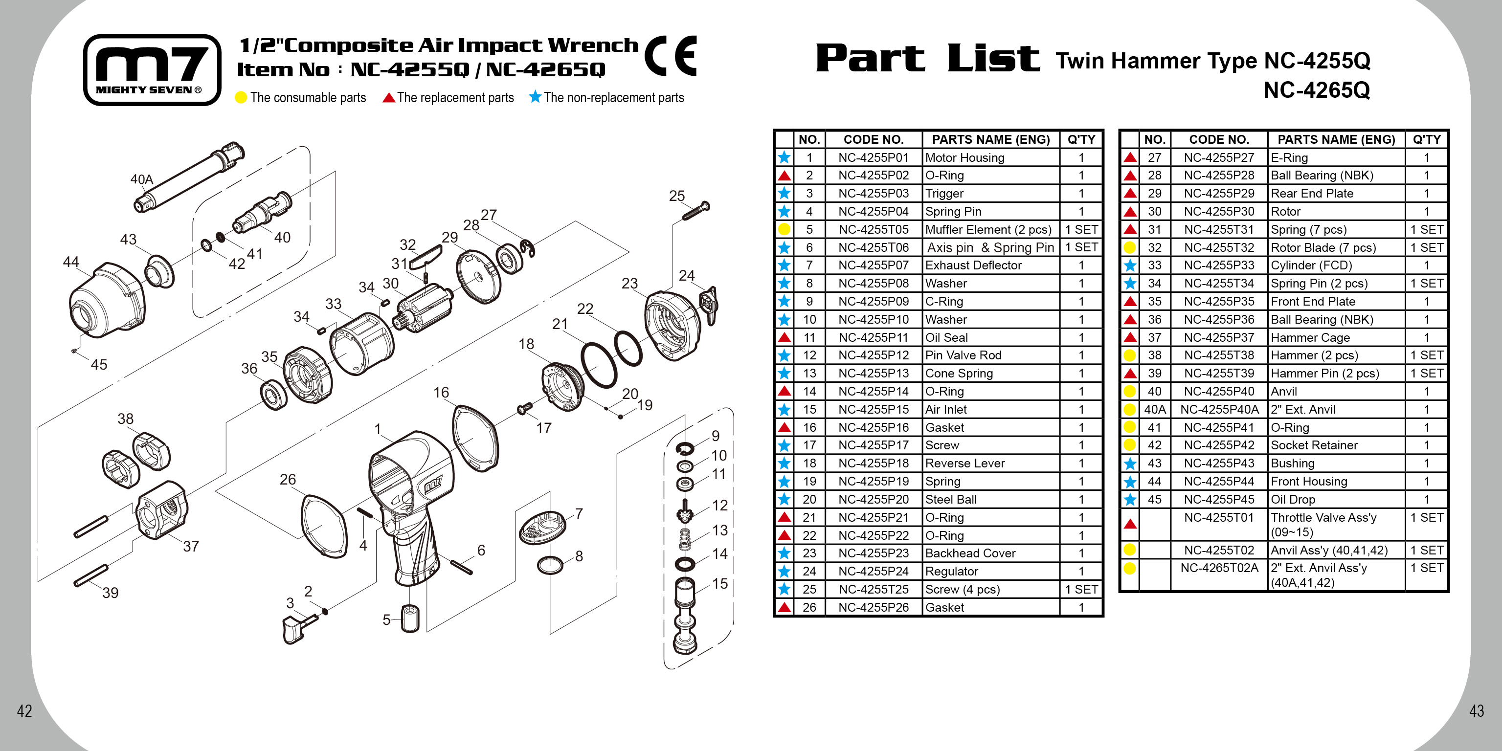 Klucz udarowy pneumatyczny 1/2" 1627Nm Mighty Seven NC-4255QH z systemem EZ Grease