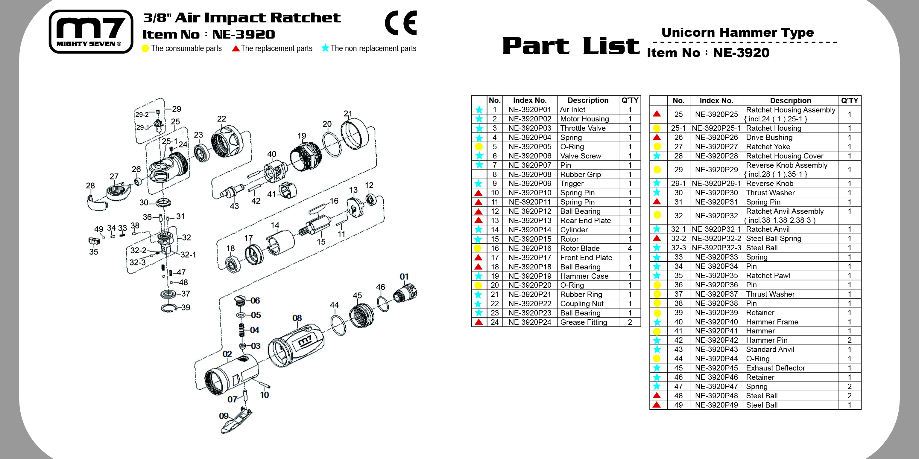 Klucz zapadkowy pneumatyczny Mighty Seven NE-3920 3/8''" 68 Nm
