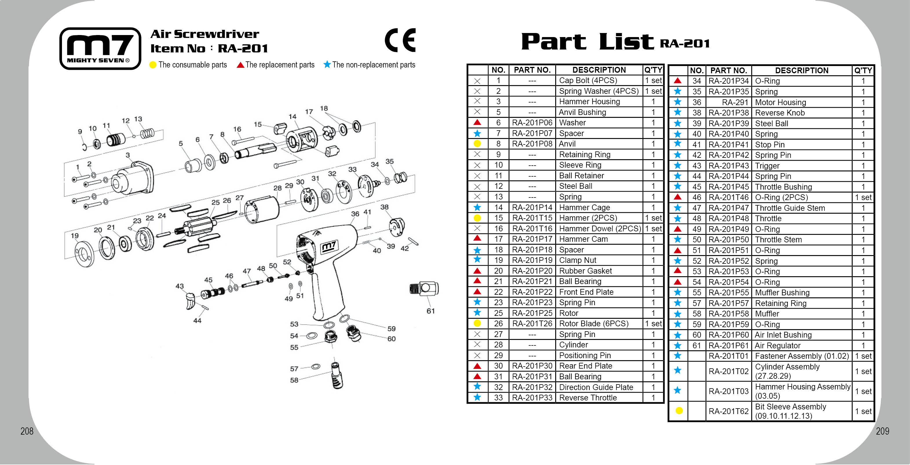 Wiertarko-wkrętarka pneumatyczna RA-201 Mighty Seven M7