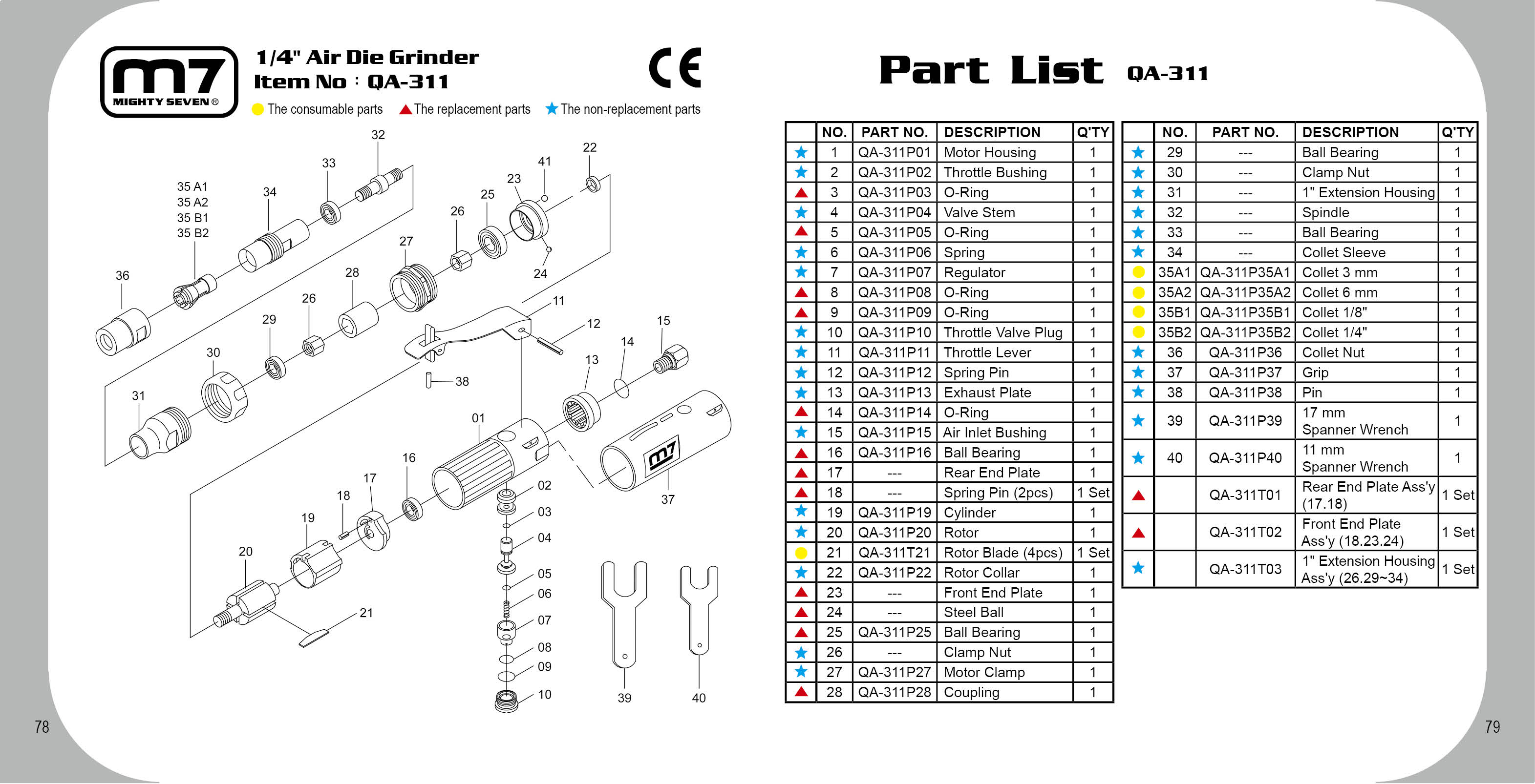 Szlifierka pneumatyczna trzpieniowa (uchwyt 3/6 mm) 25000 obr./min. Mighty Seven QA-311A