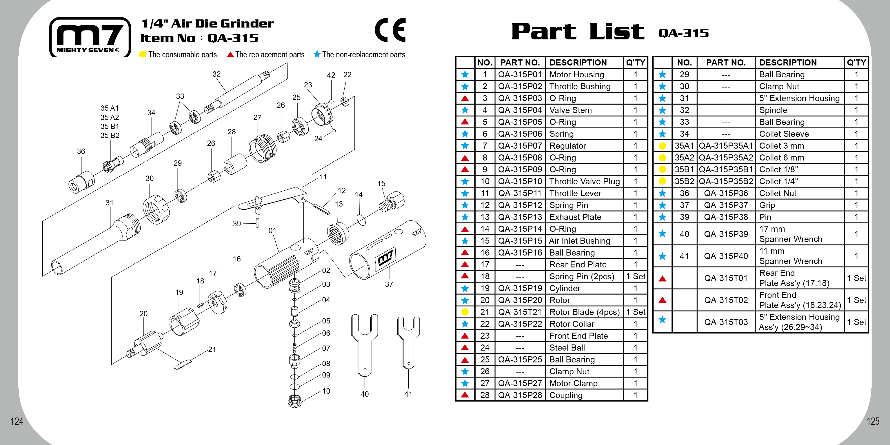 Szlifierka pneumatyczna trzpieniowa (uchwyt 3/6 mm) 25000 obr./min. Mighty Seven QA-315A