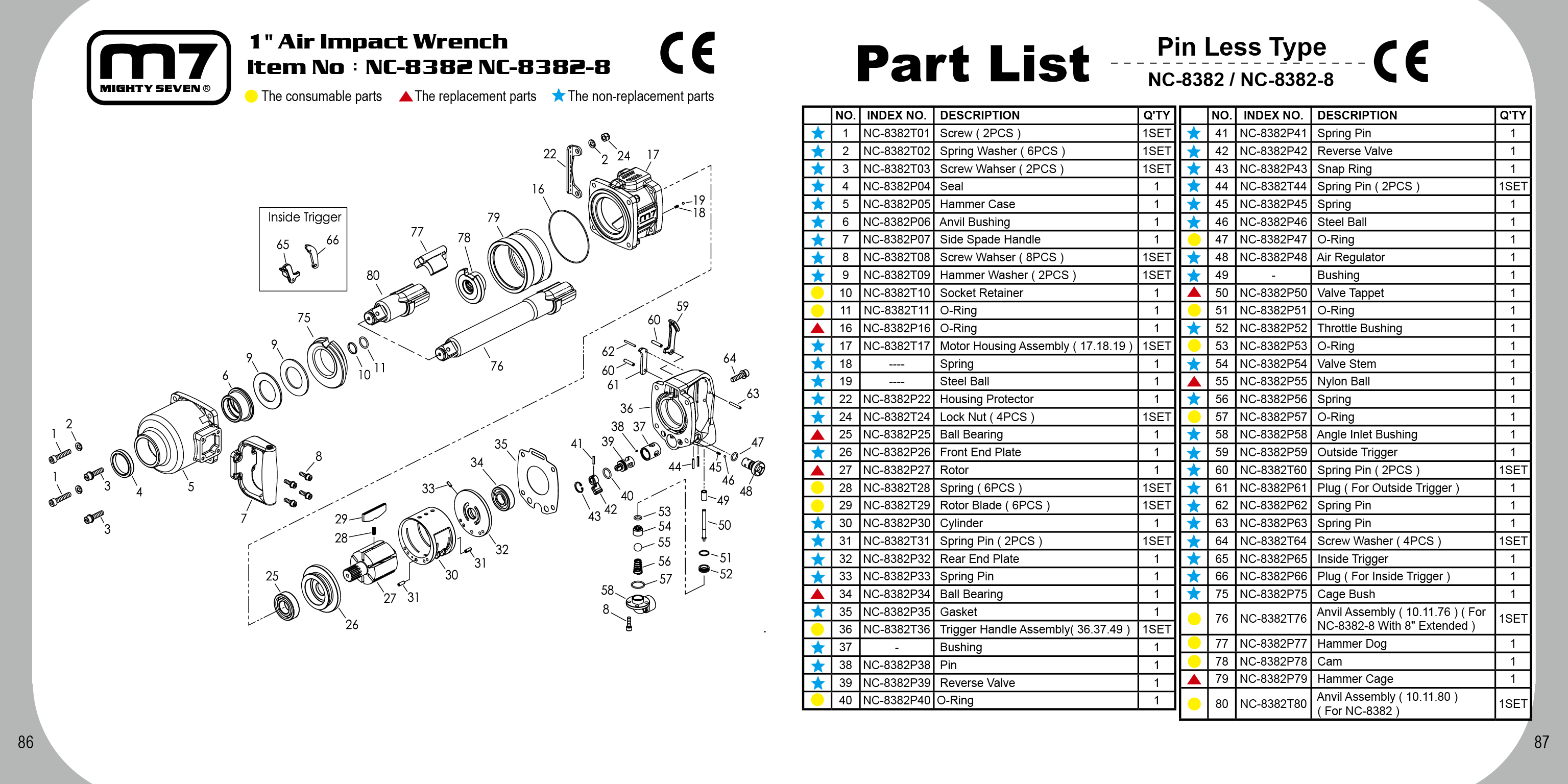 Klucz udarowy pneumatyczny 1'' 3390Nm NC-8382-8 Mighty Seven M7