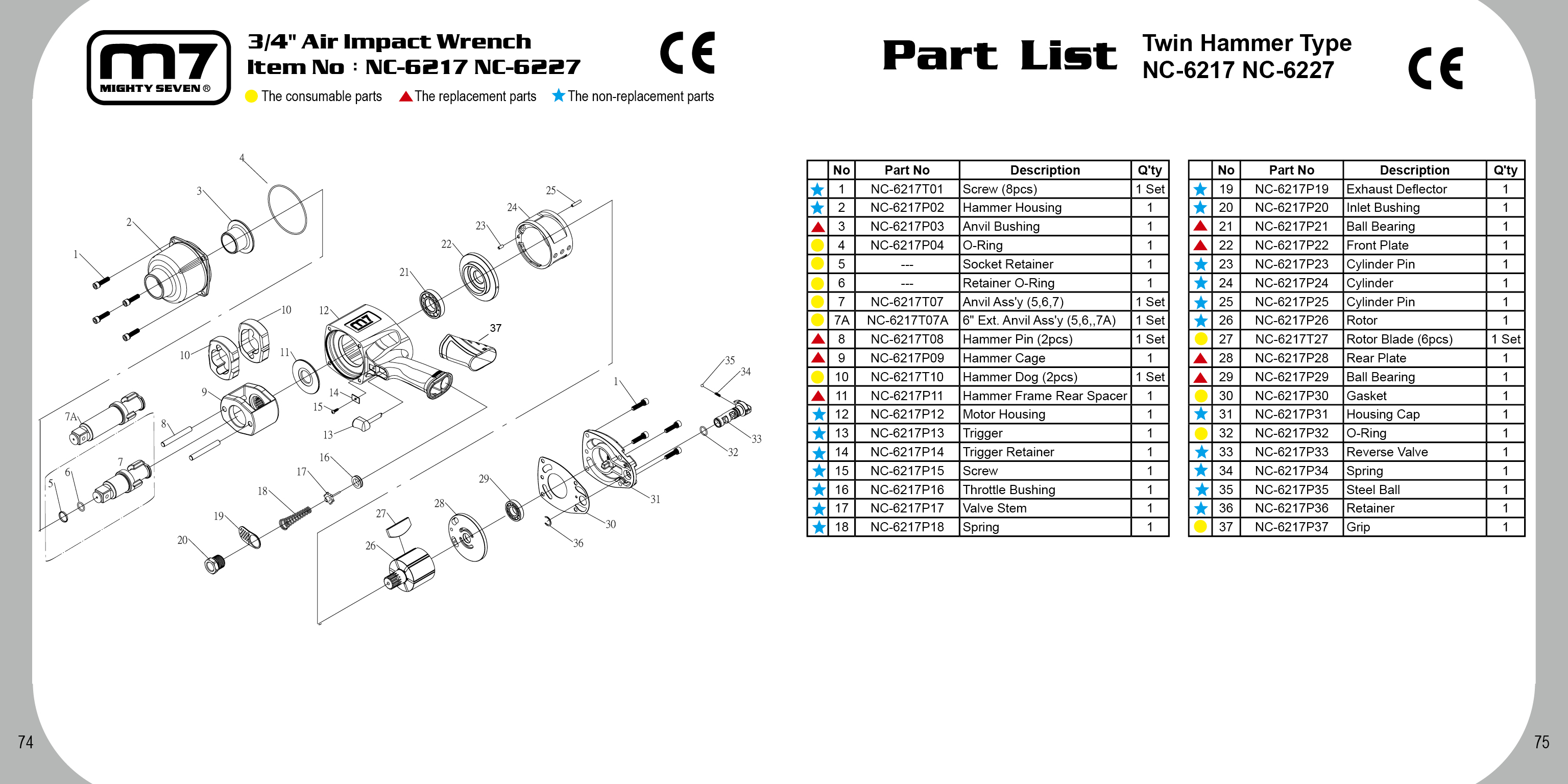 - Klucz udarowy osiąga prawie 1900 Nm w zaledwie 5 sek. Mechanizm udarowy wykonany ze specjalnego stopu stali, który gwarantuje długą żywotność. NC-6217 NC 6217 NC6217