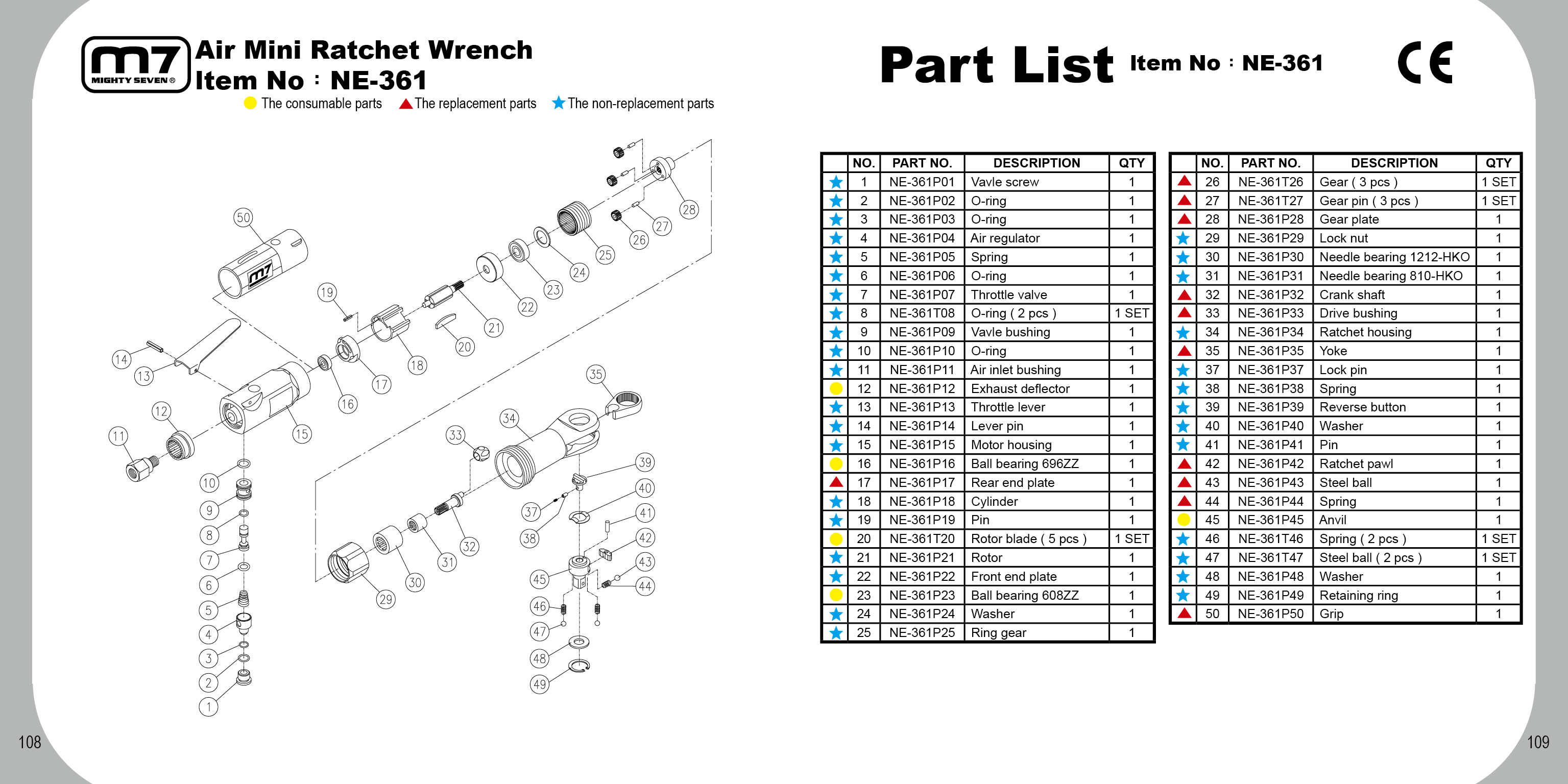 Klucz zapadkowy pneumatyczny Mighty Seven NE-362 3/8" 50 Nm