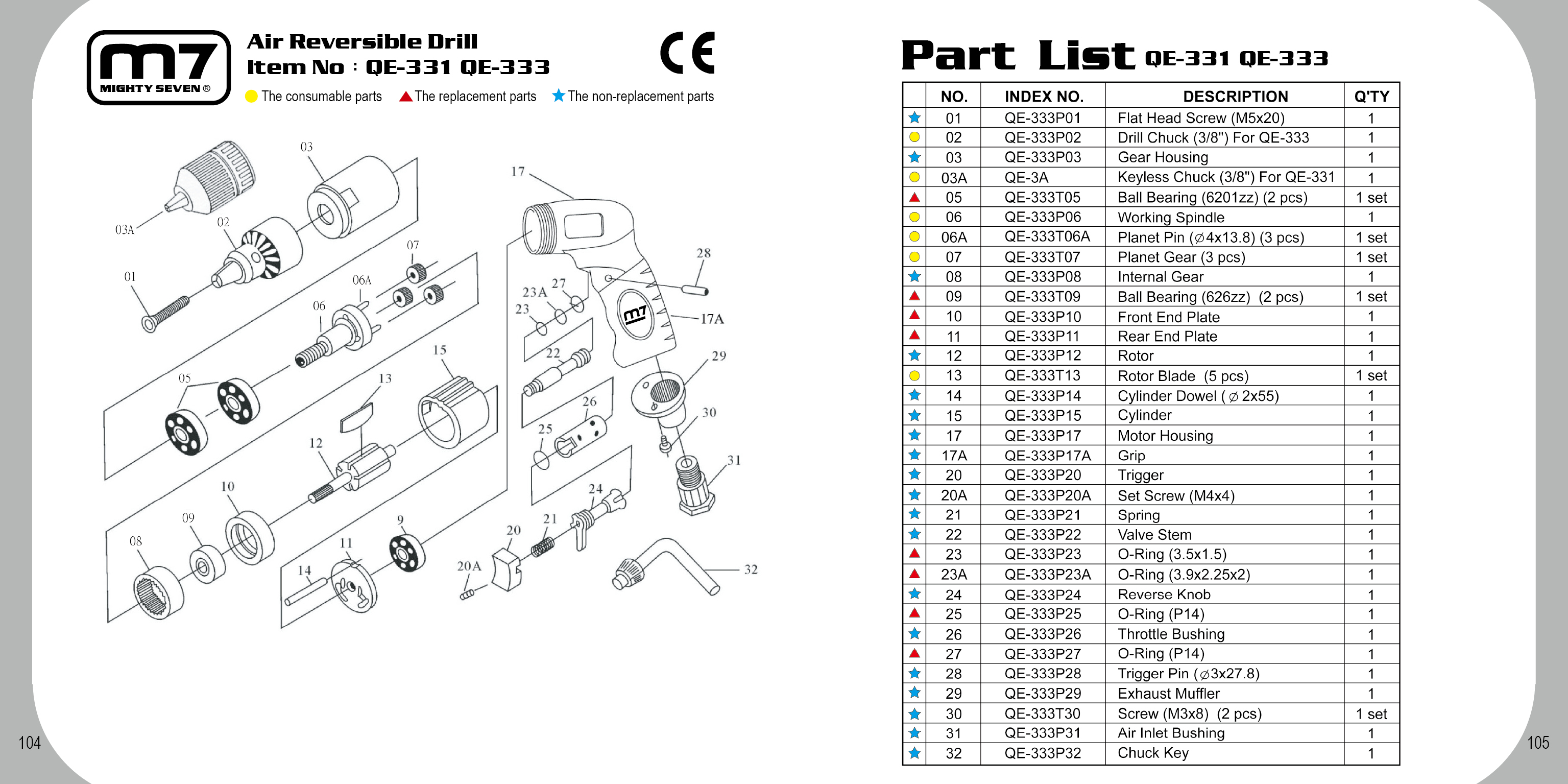 Wiertarka pneumatyczna pistoletowa dwukierunkowa 1800 obr./min. Mighty Seven QE-331