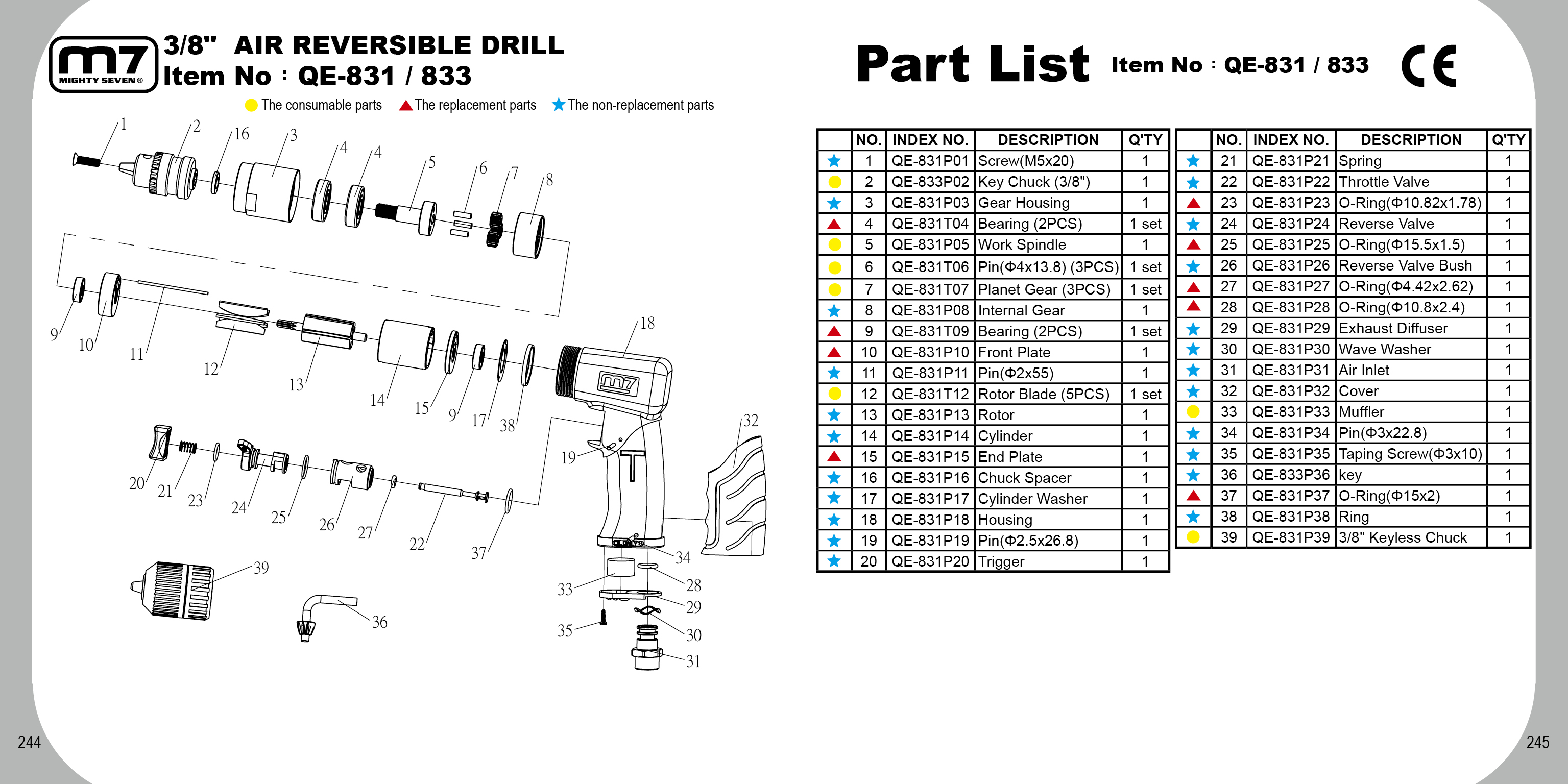 Wiertarka pneumatyczna pistoletowa dwukierunkowa 1800 obr./min. Mighty Seven QE-831